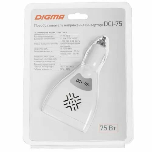Автоинвертор Digma DCI-75, 75 Вт, белый интересное: