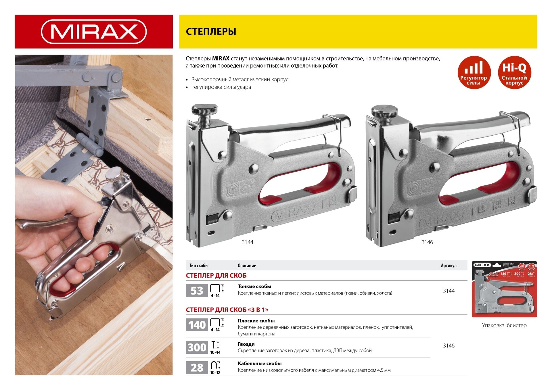 MIRAX Степлер с регулировкой силы удара тип 53 (4-14 мм), MIRAXMIRAX 3144