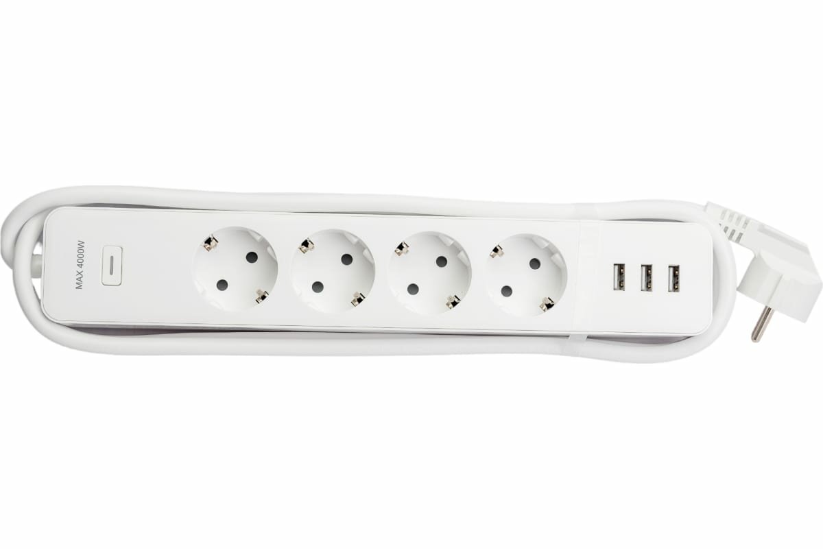 Удлинитель бытовой 4гн+3USB с/з б/шт с/выкл белый 3х1,5/1,8м Wi-F EKF Connect