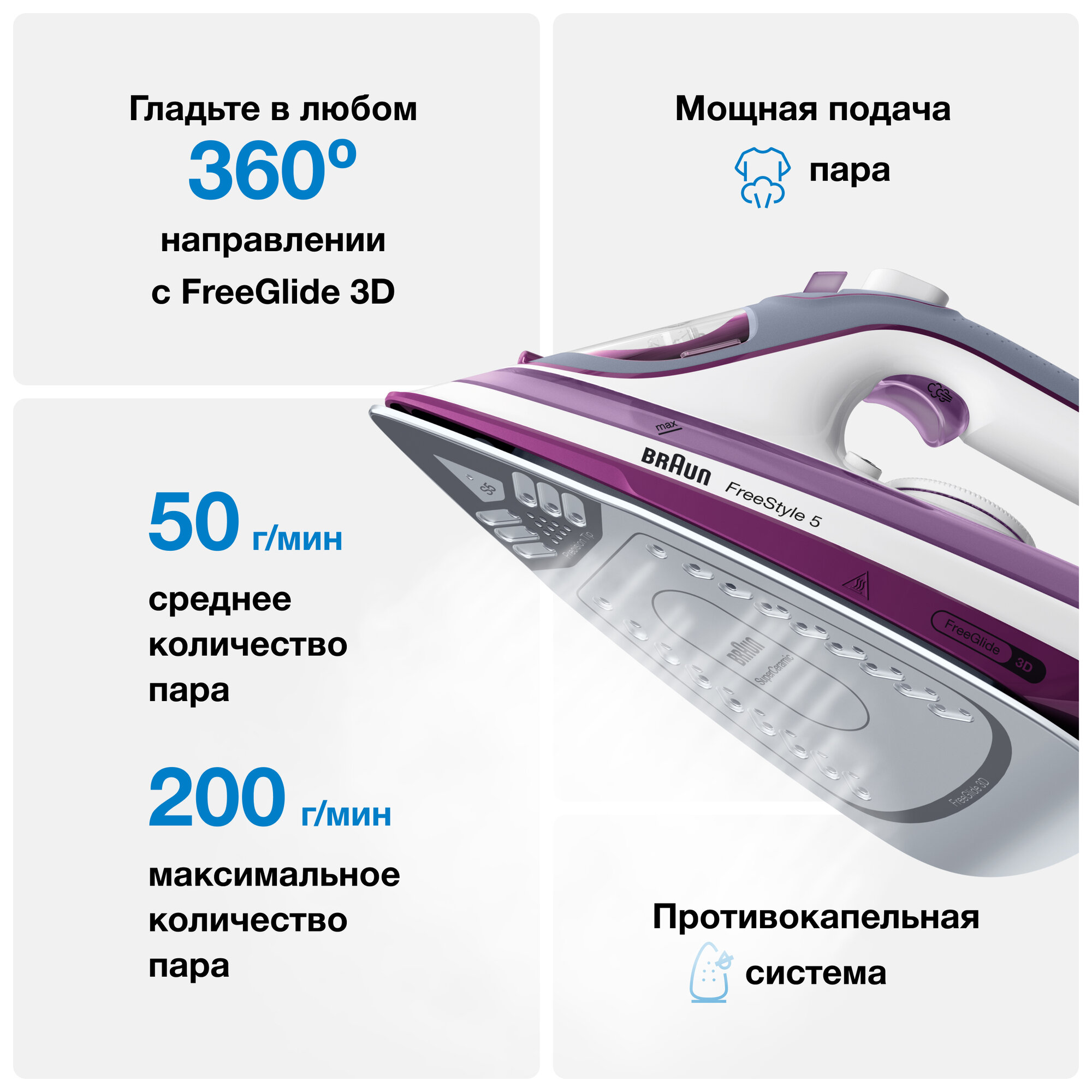 Утюг Braun TexStyle5 SI5037VI, белый/фиолетовый