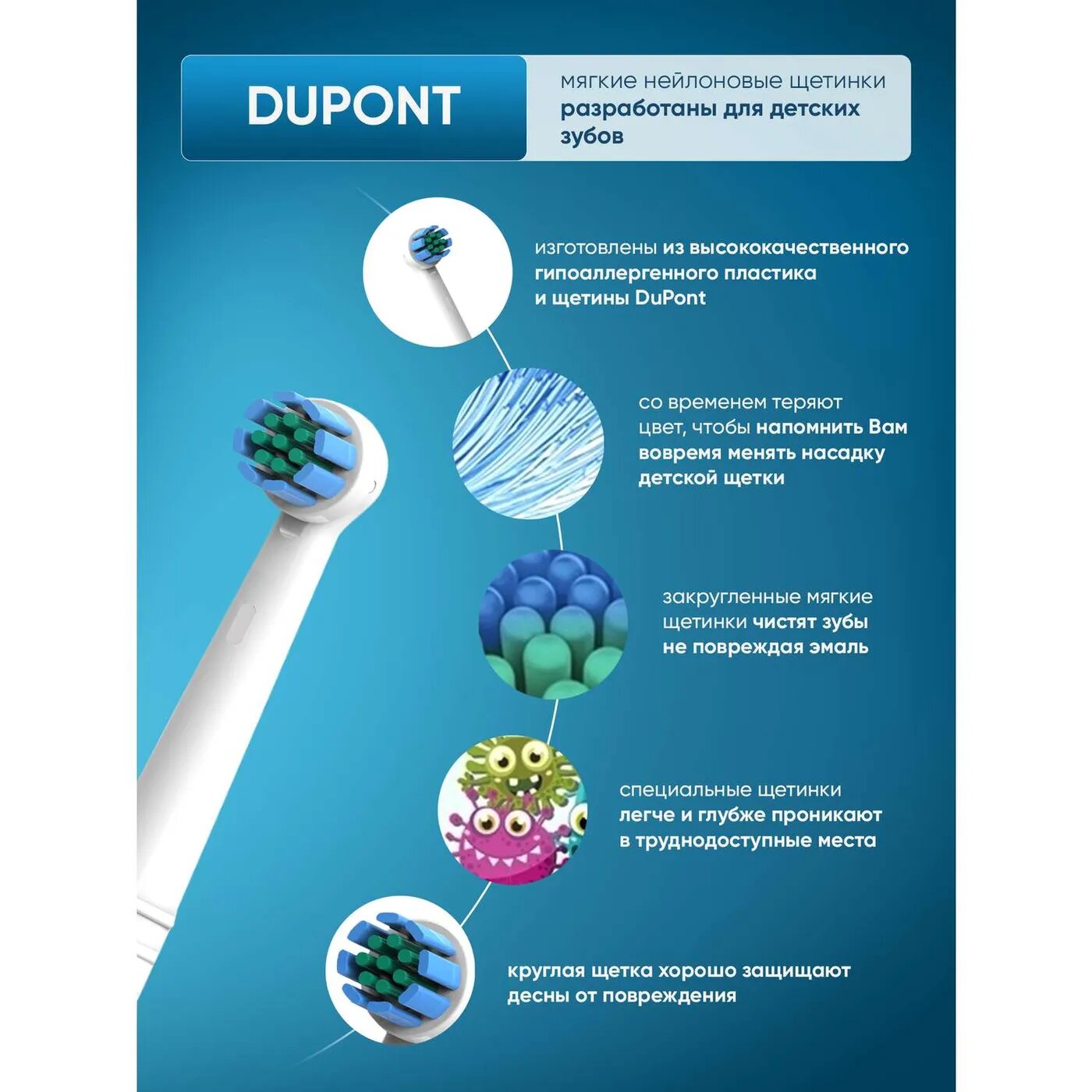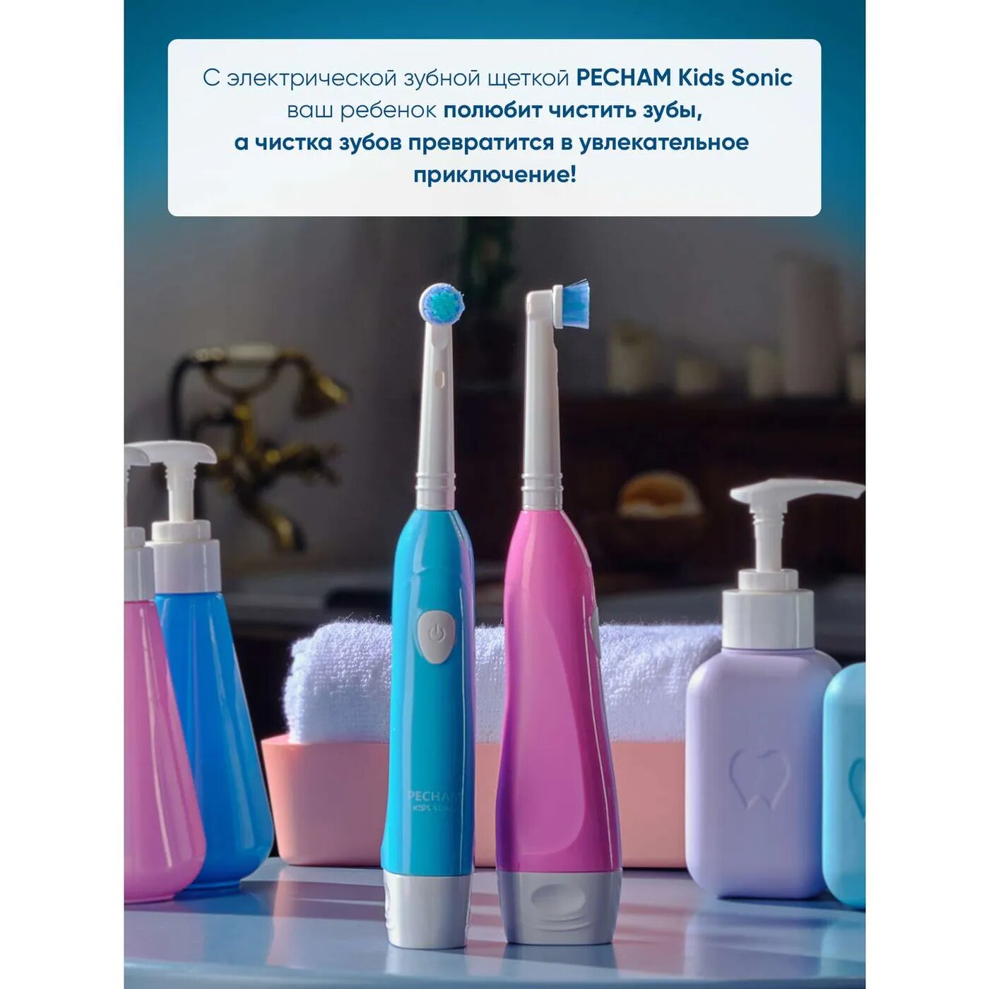 Детская электрическая зубная щетка PECHAM Kids Sonic Blue 5+, 2 насадки, 2 батарейки АА
