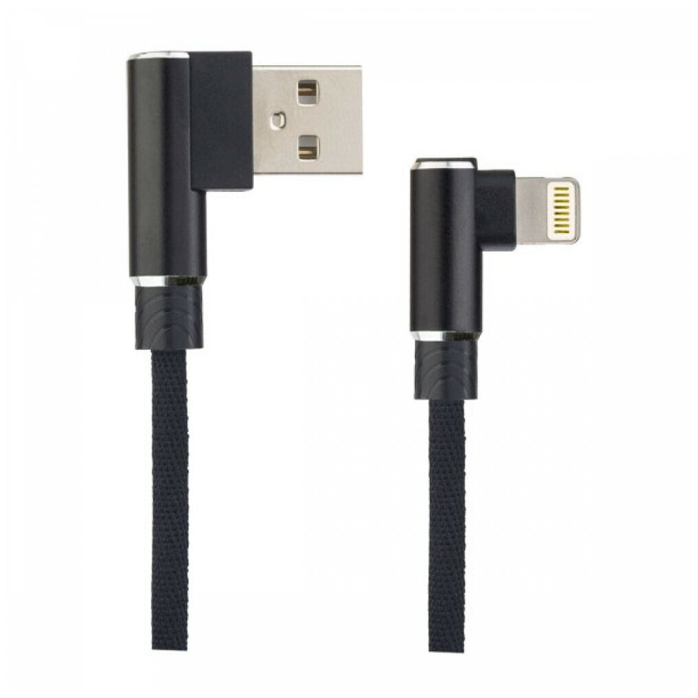 Плоский мультимедийный кабель для iPhone, USB - 8 PIN (Lightning), черный, угловой, длина 1 м., бокс (I4315)