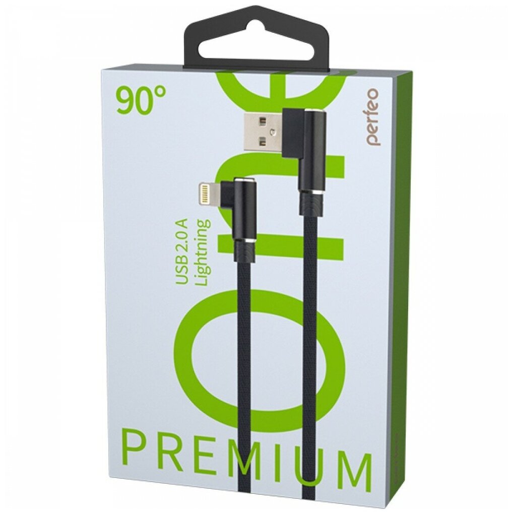 Кабель PERFEO для iPhone, USB - 8 PIN (Lightning), угловой, черный, длина 1 м., бокс (I4315)