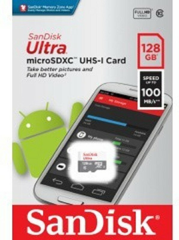 Карта флэш-памяти MicroSD, 128 Гб SanDisk Ultra UHS-I без адаптера (100 Mb/s)