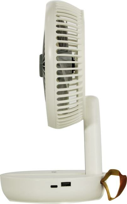 •Много уровней мощности, но даже самой маленькой вполне хватает, если поставить его рядом с собой на рабочий стол. Вообщем он ничуть не уступает напольным вентиляторам. •Можно подвесить за петельку, это огромный плюс, так как планируем брать его летом на кемпинг и вешать в палатке. •Зарядка от тайпсишного провода. |