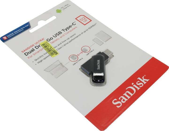 USB флешка Sandisk 512Gb Ultra Dual Drive Go USB 3.1 gen 1/ USB Type-C 150 Mb/s