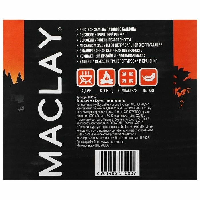 Плита газовая Maclay Краб 15 х 15 х 9 см 140557 .