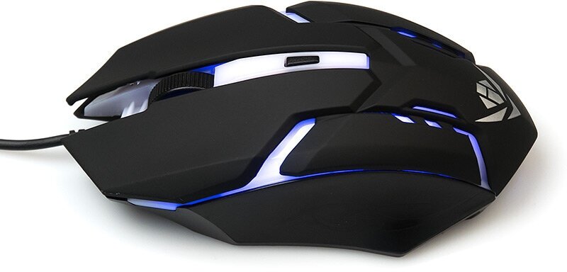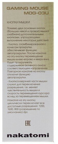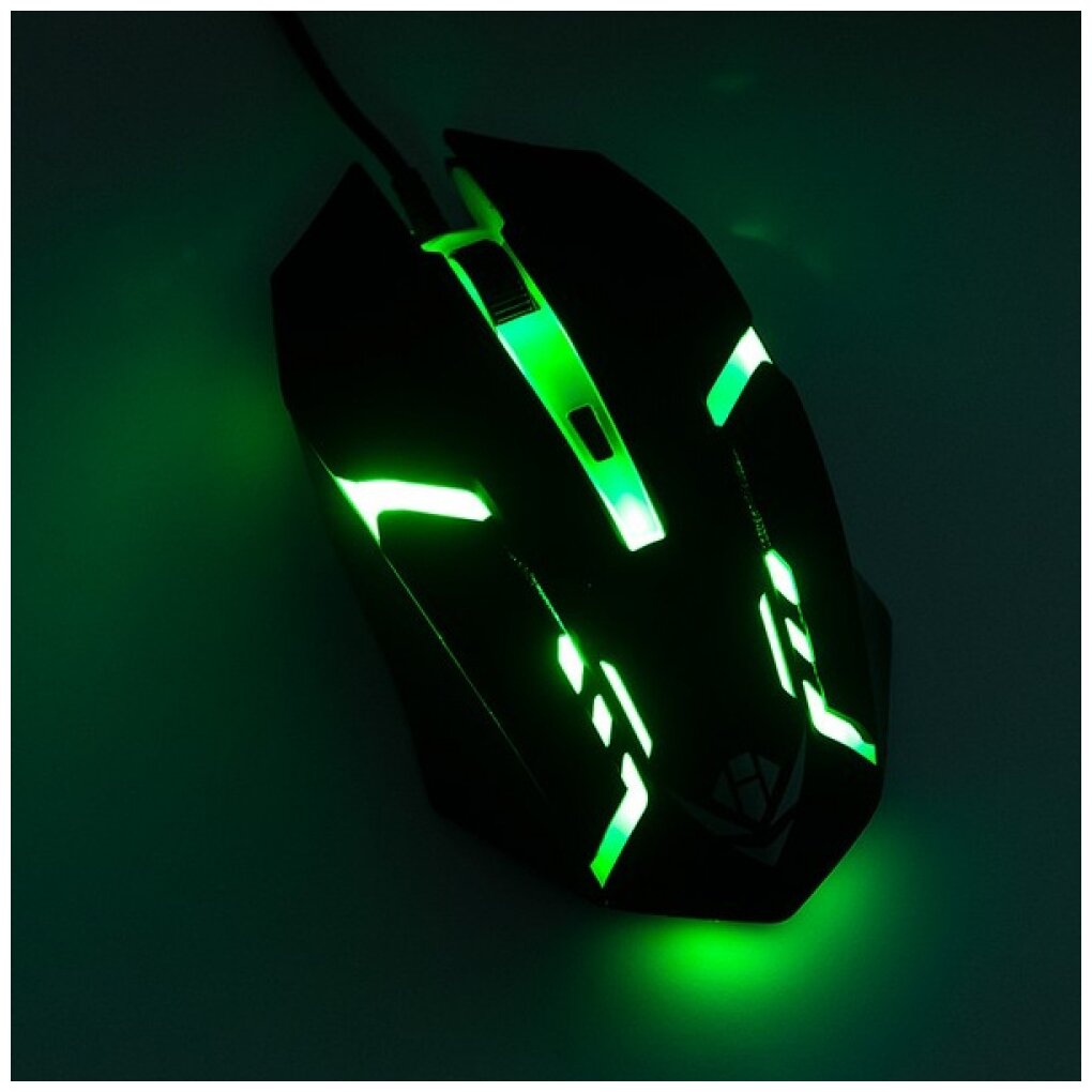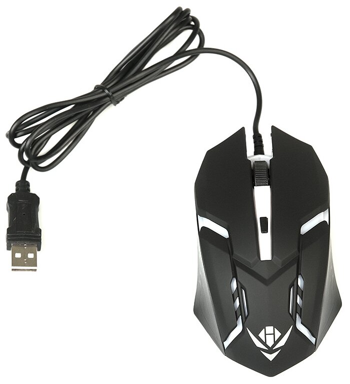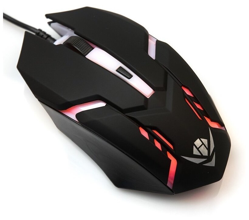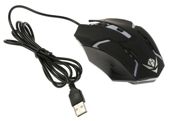 Мышь Nakatomi Gaming MOG-03U, черная, USB, проводная, 4 кнопки + ролик прокрутки, игровая. Подсветка корпуса. Разрешение 800/1000/1200/1600 dpi. Длина кабеля 1,5 м.