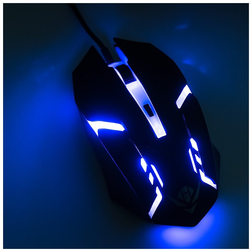 | Плюсы: | красиво переливается разными цветами, довольно большая и удобно лежит в руке, оптический датчик частично справляется даже со стеклянной поверхностью, хотя для стекла коврик всё же нужен, но не каждая заметно более дорогая мышь справиться со стеклом, переключение разрешения кнопкой оказалось удобно, легко поменять скорость движения курсора по экрану |