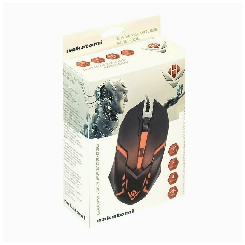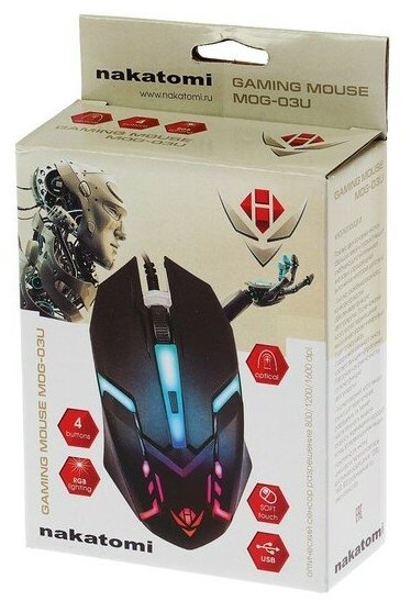 Купить Мышь Nakatomi MOG-03U Gaming, игровая, проводная, 4 кнопки, подсветка, 1600 dpi, USB, чёрная