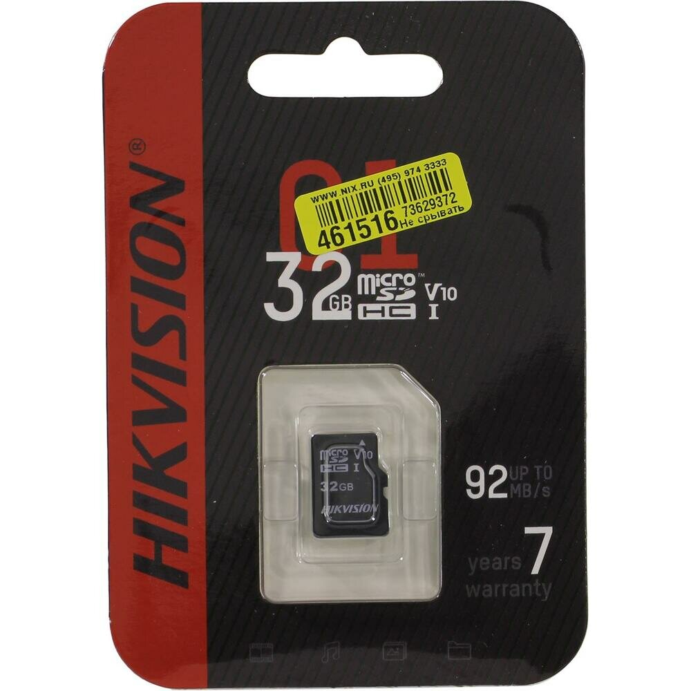 Карта памяти microSDHC UHS-I U1 Hikvision 32 ГБ, 92 МБ/с, Class 10, HS-TF-C1(STD)/32G/ZAZ01X00/OD, 1 шт., переходник без адаптера