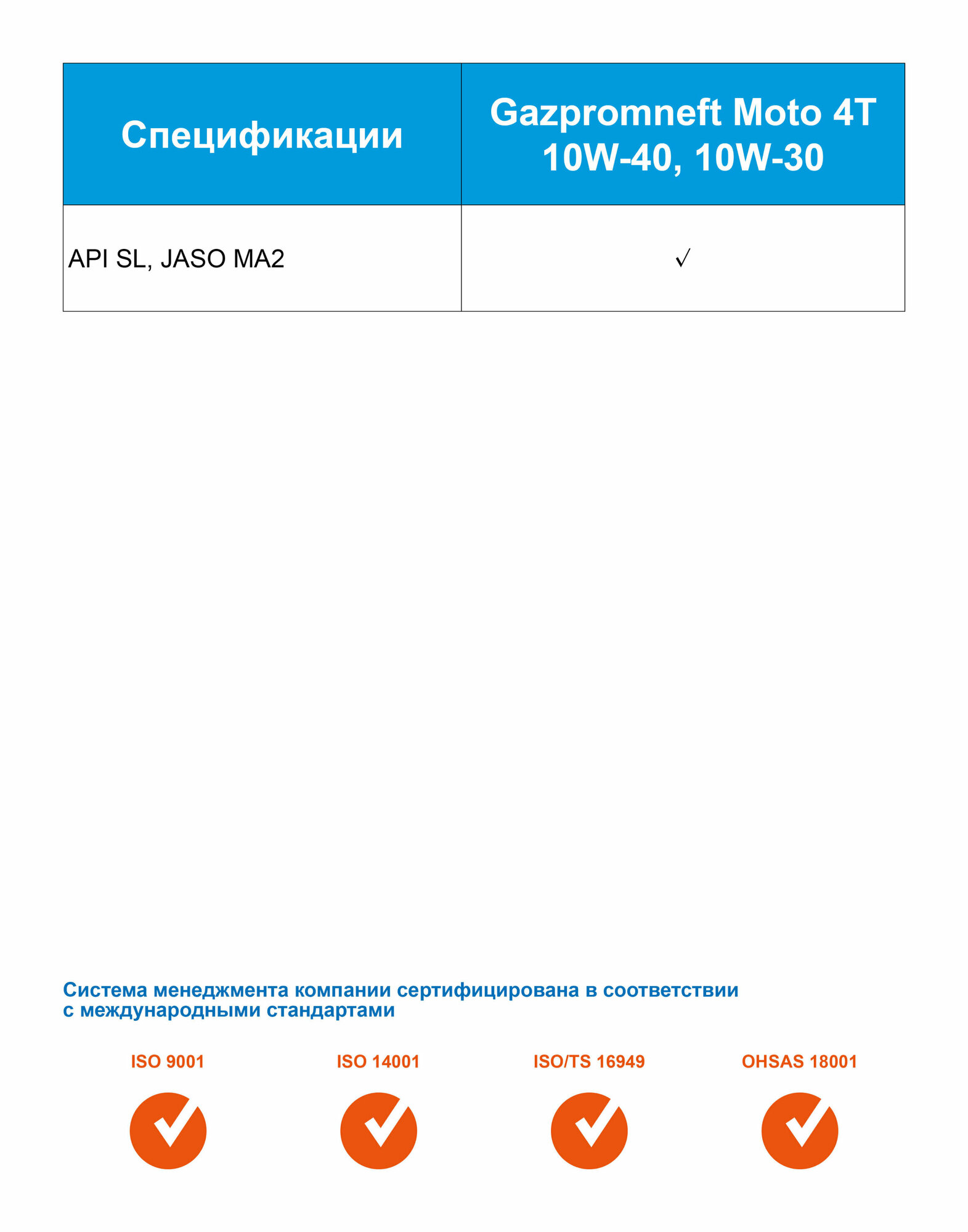 | Класс вязкости SAE | 10W-40 |