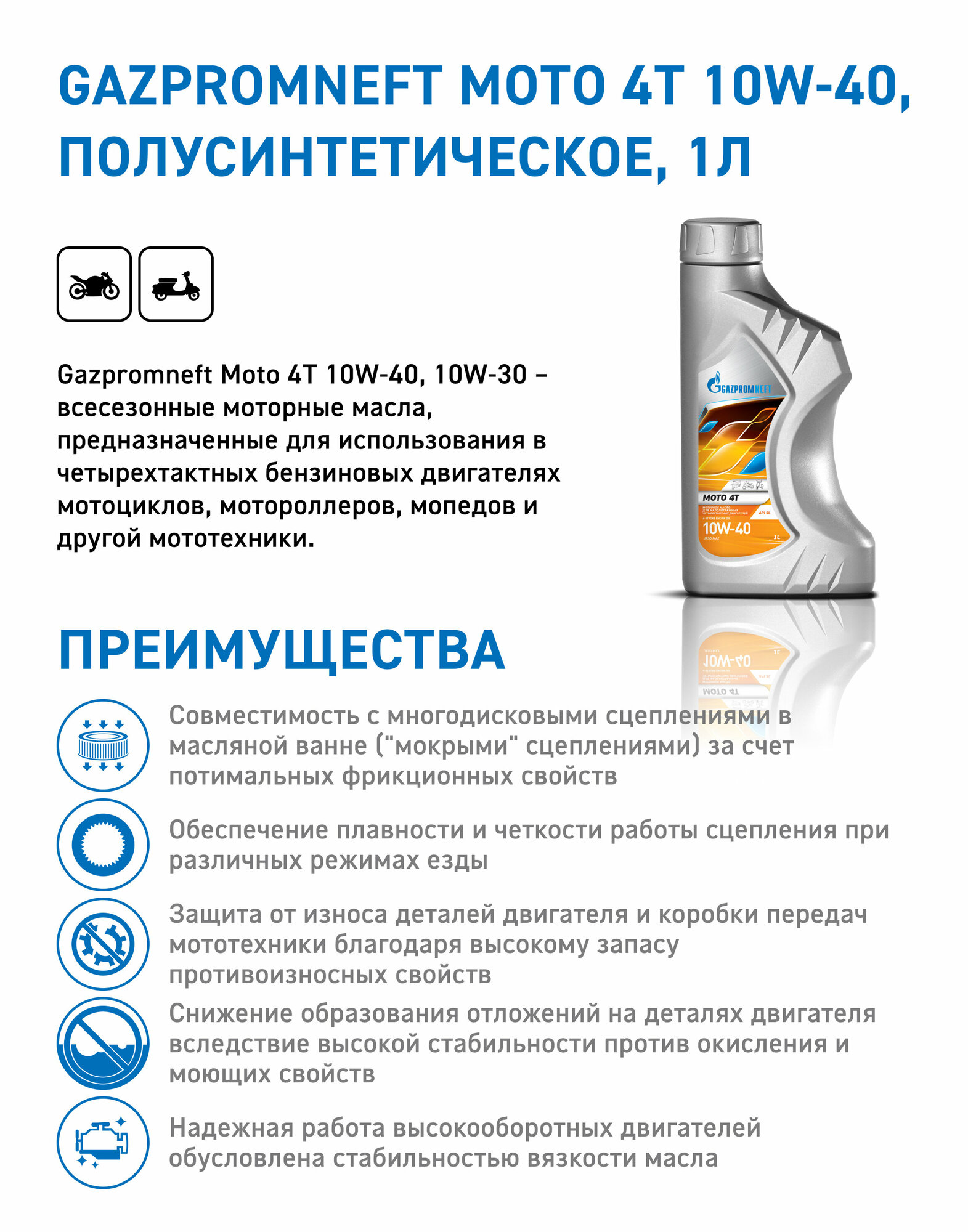 Полусинтетическое моторное масло Газпромнефть Moto 4T 10W-40, 1 л, 1 кг