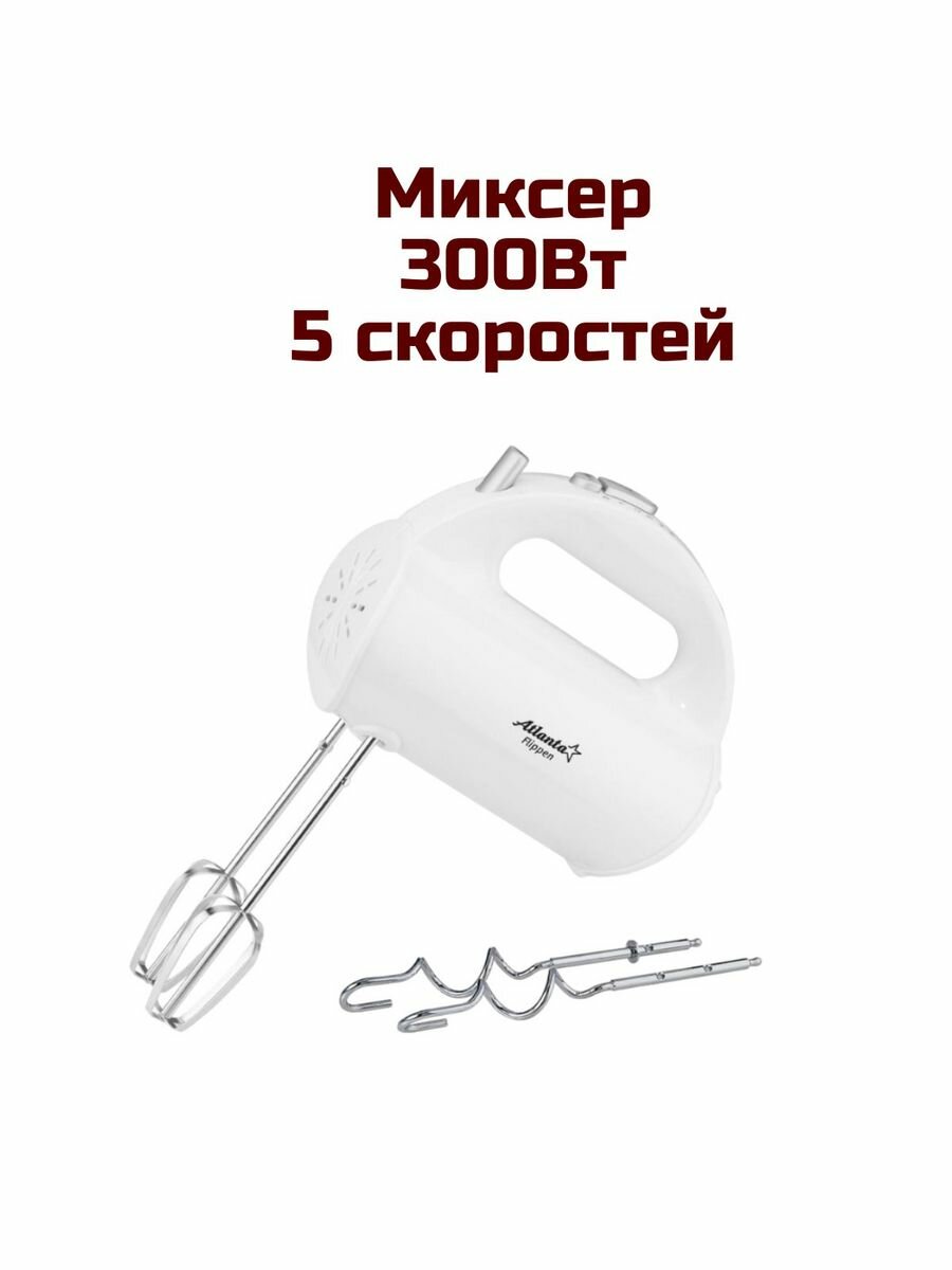 Миксер электрический Atlanta ATH-3115, 300 Вт, два комплекта насадок, турбо, 5 скоростей