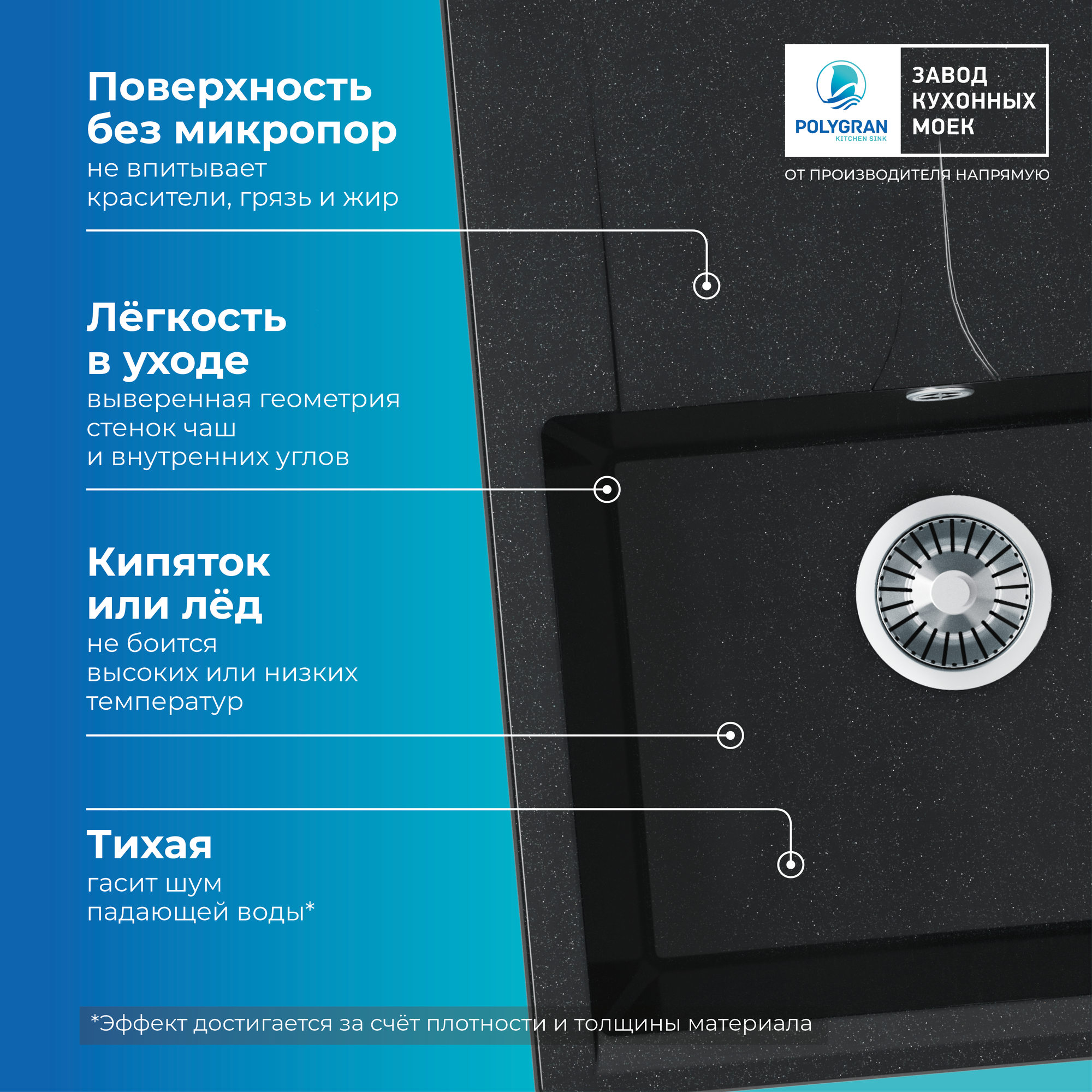 Мойка кухонная POLYGRAN Gals-620 Черный № 16
