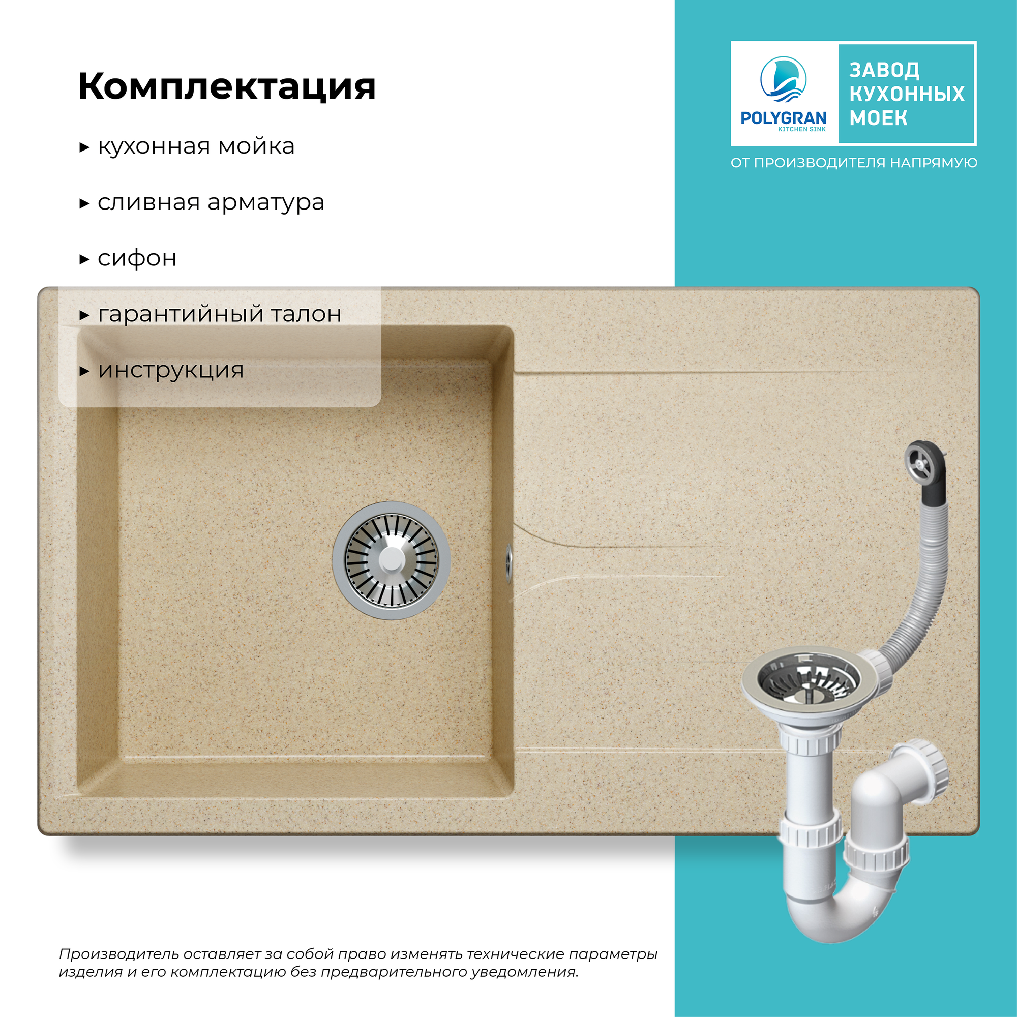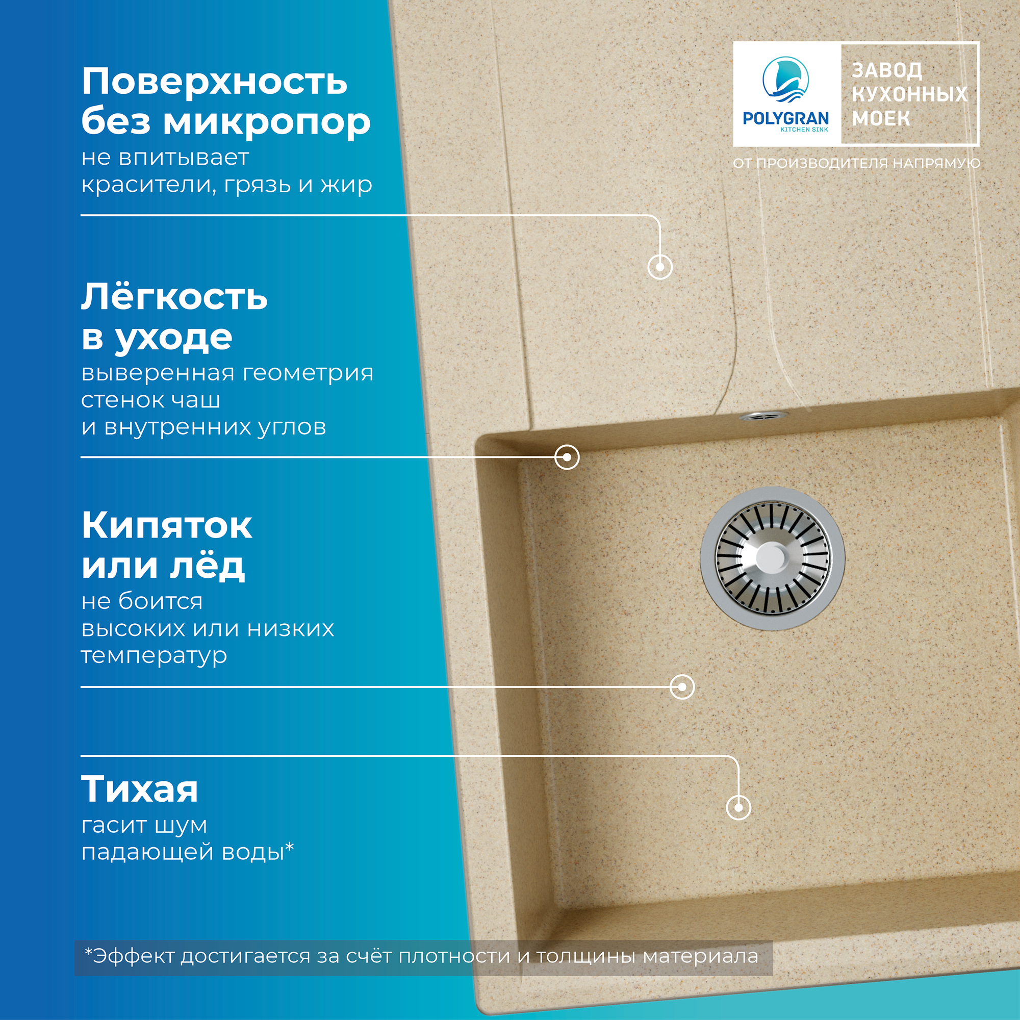 Мойка кухонная POLYGRAN Gals-860 Бежевый № 27