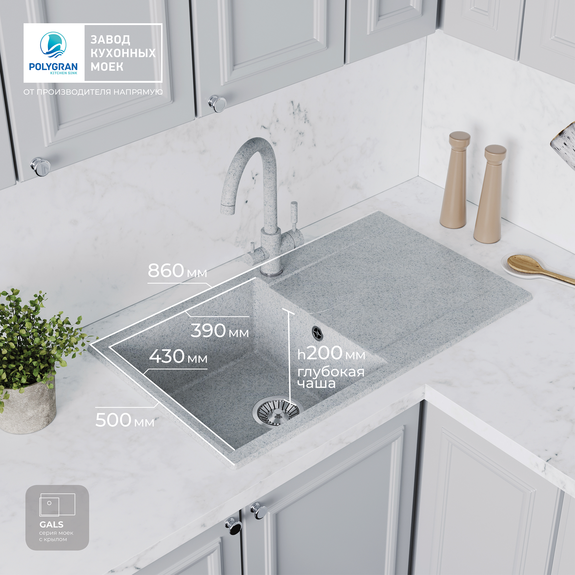 СохранитьМойка для кухни POLYGRAN Gals-860 каменная с крылом (№314 Светло-серый) интересное: