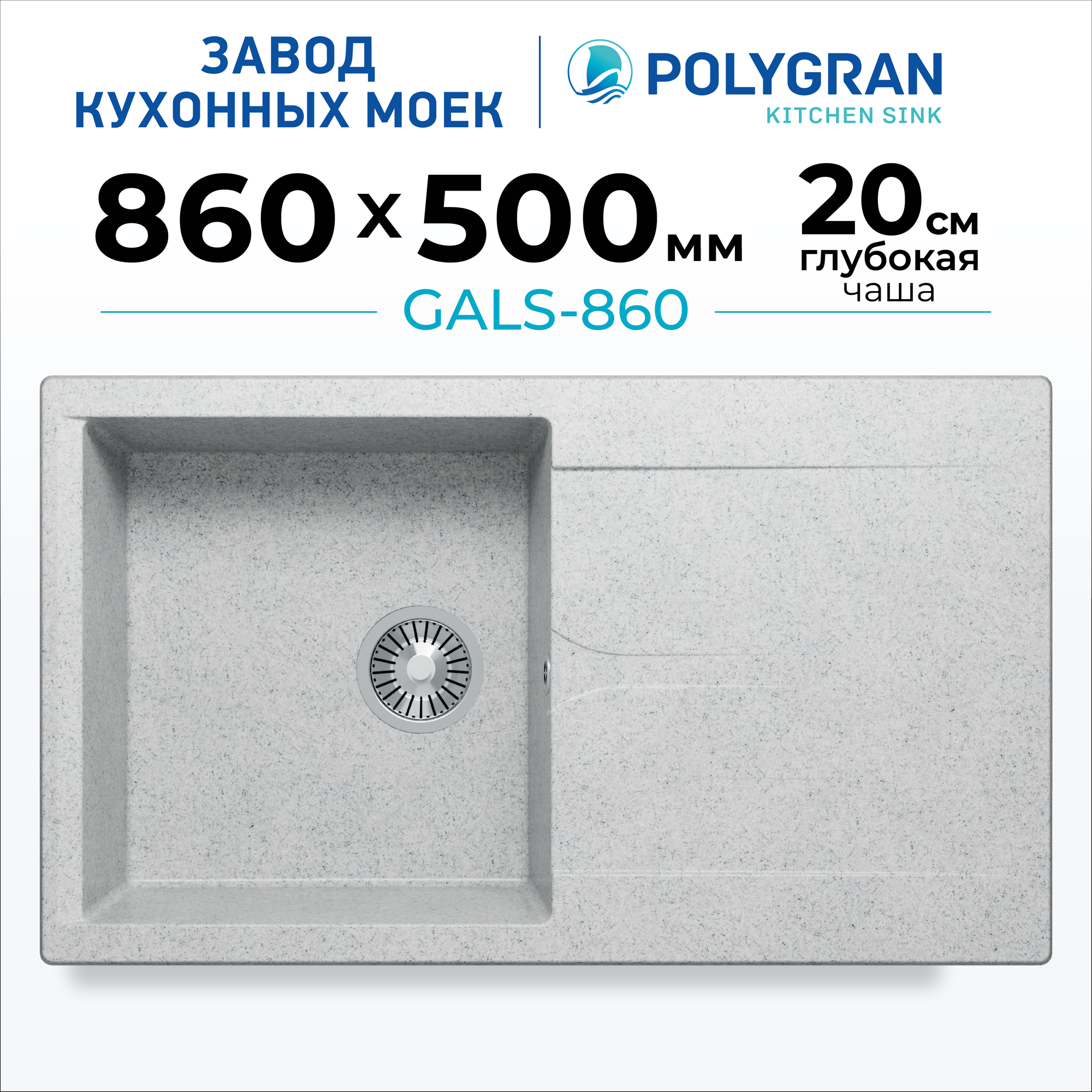 Купить Мойка для кухни POLYGRAN Gals-860 каменная с крылом (№314 Светло-серый)