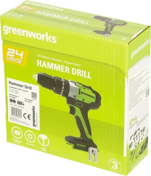 Ударная дрель-шуруповерт GREENWORKS GD24DD60 без АКБ, без ЗУ [3704107]
