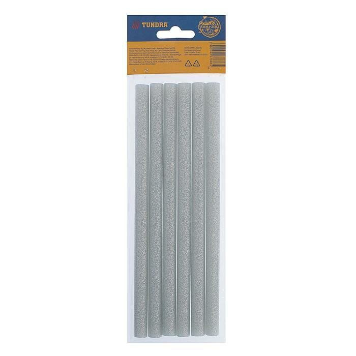 Клеевые стержни тундра, 11 х 200 мм, серебристые с блестками, 6 шт., TUNDRA
