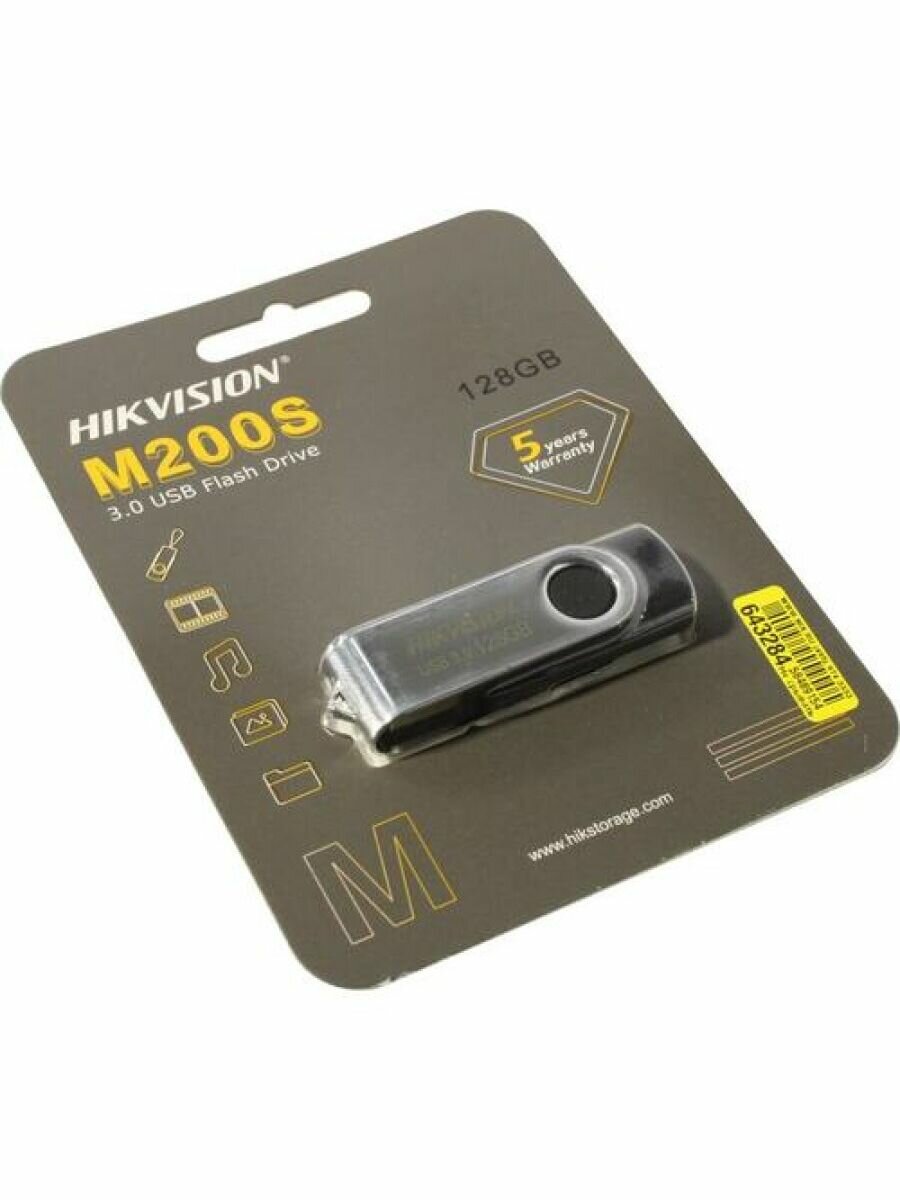 Hikvision Накопитель USB flash 128ГБ Hikvision M200S HS-USB-M200S/128G/U3, черно-серебр. (USB3.0)