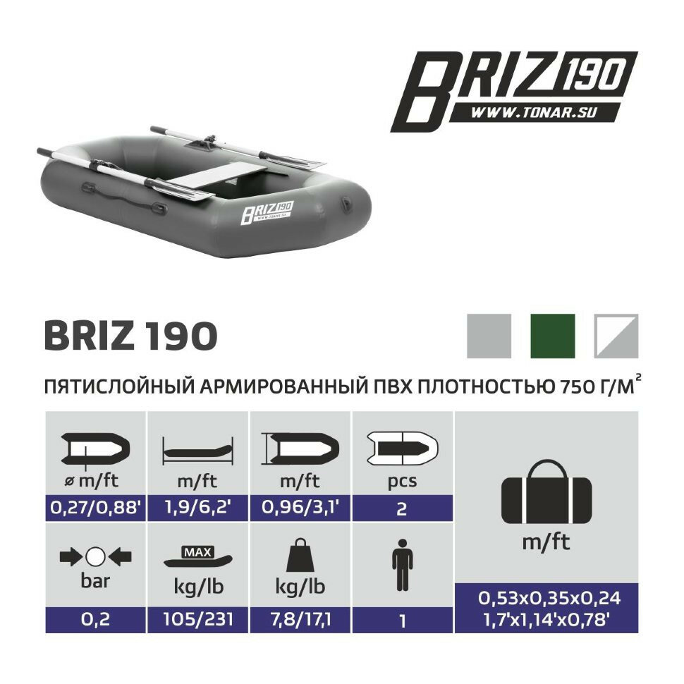 Лодка ПВХ Тонар Бриз 190 (зеленая)