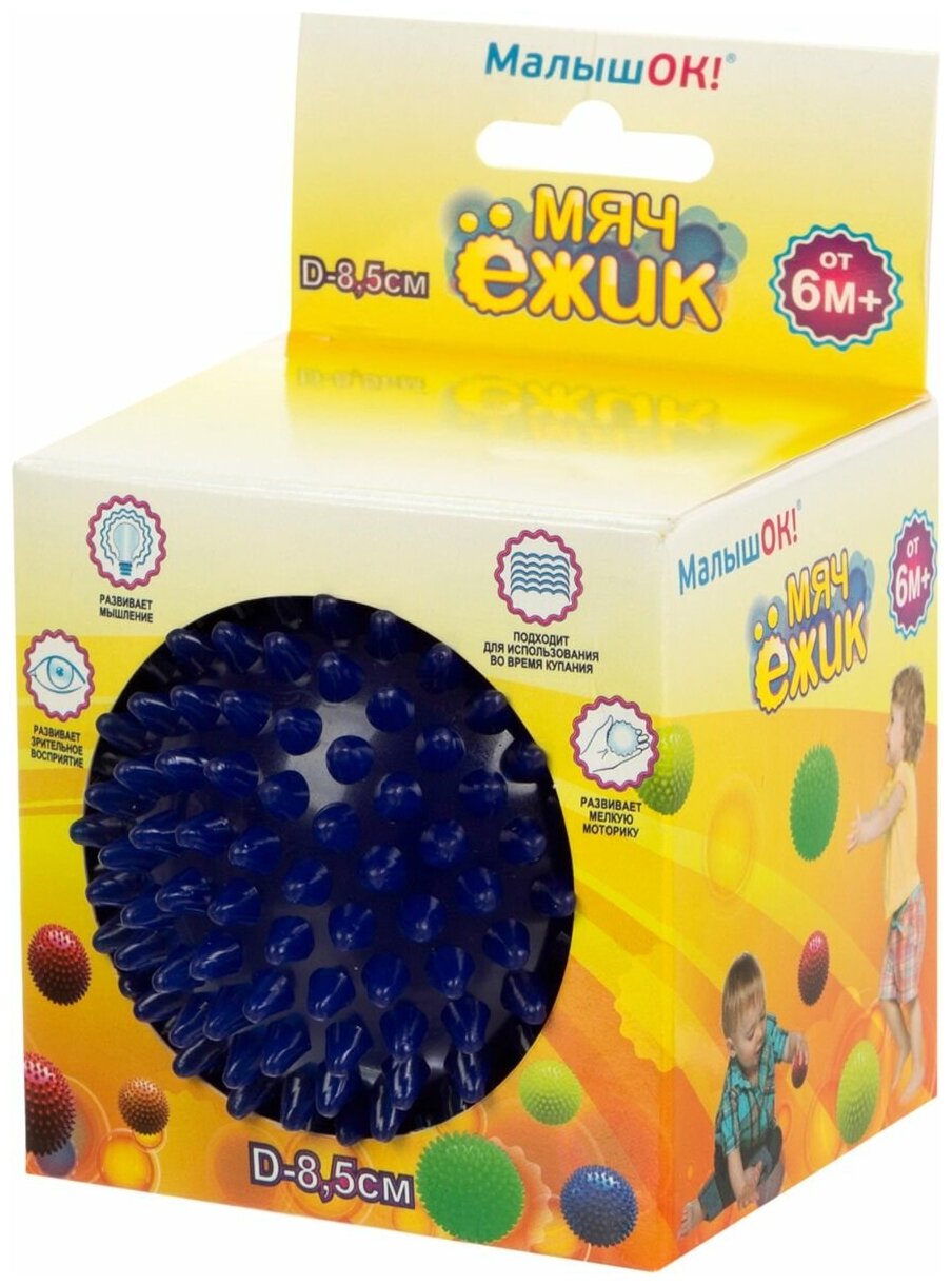 Мяч Ежик 85 мм синий в подарочной упаковке 1 шт интересное: