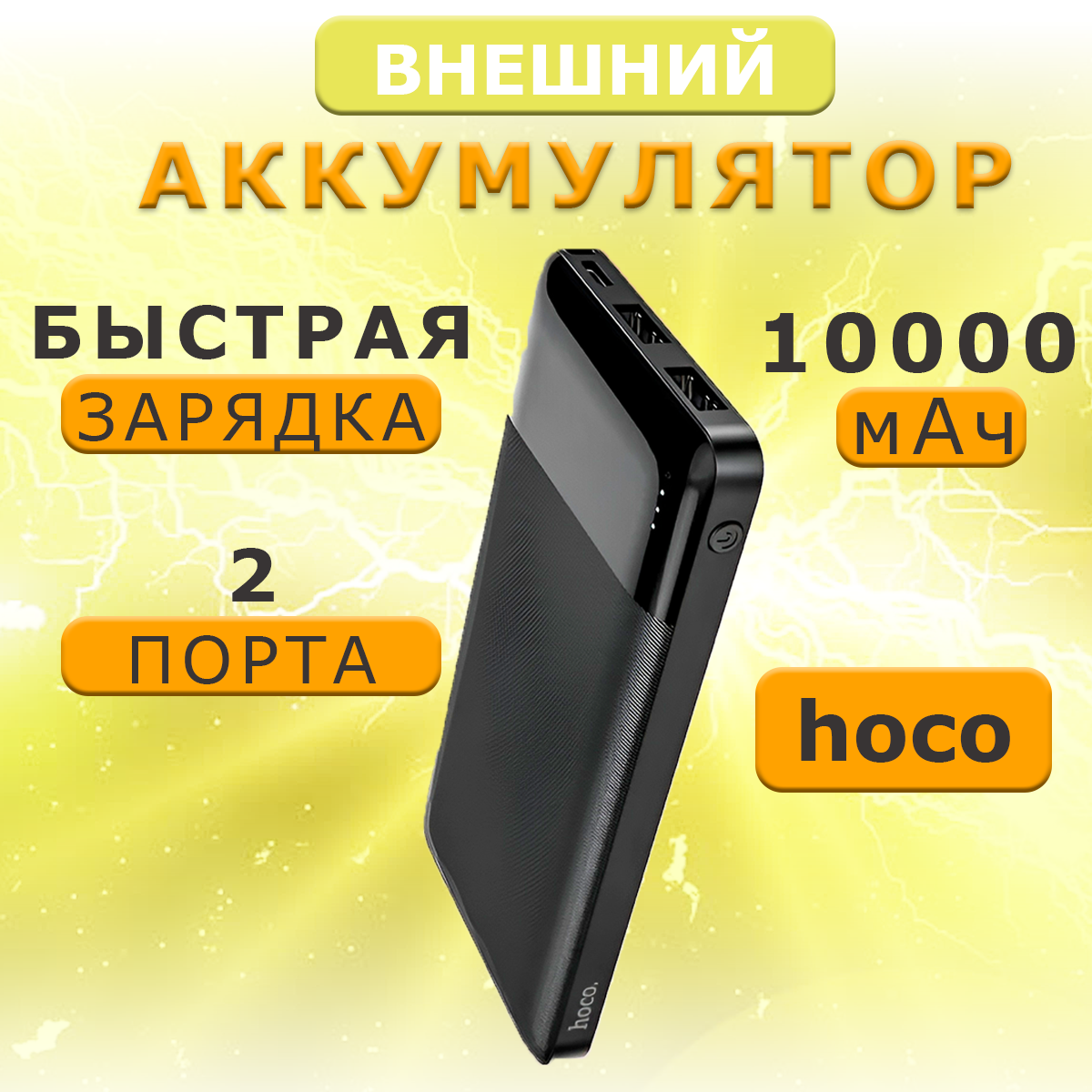 Универсальный Доп. Аккумулятор 10000mAh, J72, HOCO, 2 USB (5V/2.0A), черный