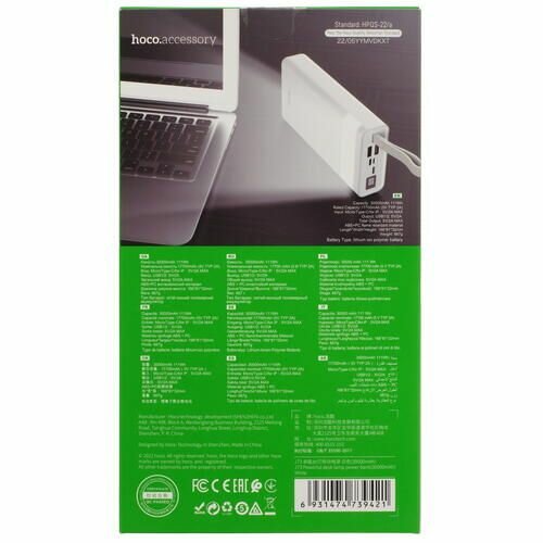 HOCO Аксессуар J73 Портативный аккумулятор, 30000mAh, 2A, белый 39421