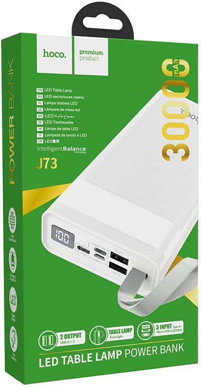 Портативный внешний аккумулятор HOCO J73, 2A, 30000 мАч, белый