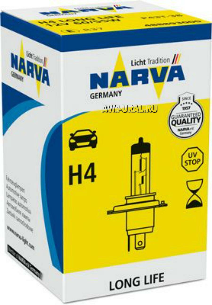 Купить NARVA 488893000 Лампа галогенная H4 12V 60/55W "NARVA" (Long Life, увелич.срок службы)