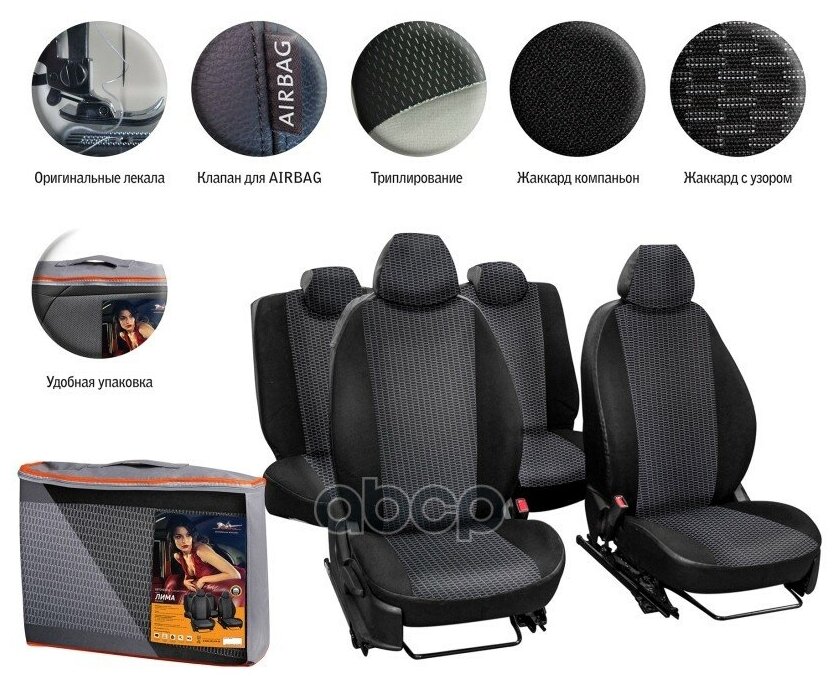 Чехлы для Renault Kaptur (16-) "Лима", 13 пред., задн.спин. 1/3, жаккард-кожзам, черн. ACCS-L-27 AIRLINE