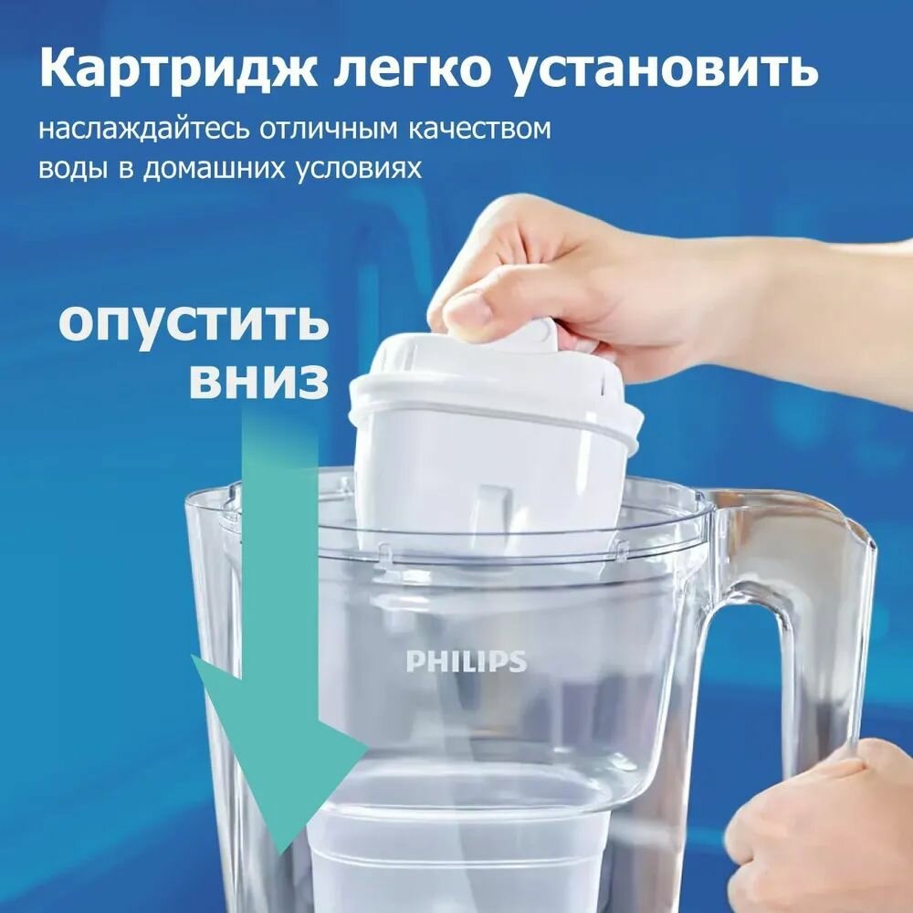 Картридж Philips Micro X-Clean AWP210/51 фильтр для очистки воды, совместим с кувшинами Brita MAXTRA и MAXTRA+, скорость фильтрации 0,3 л/мин, 1 шт