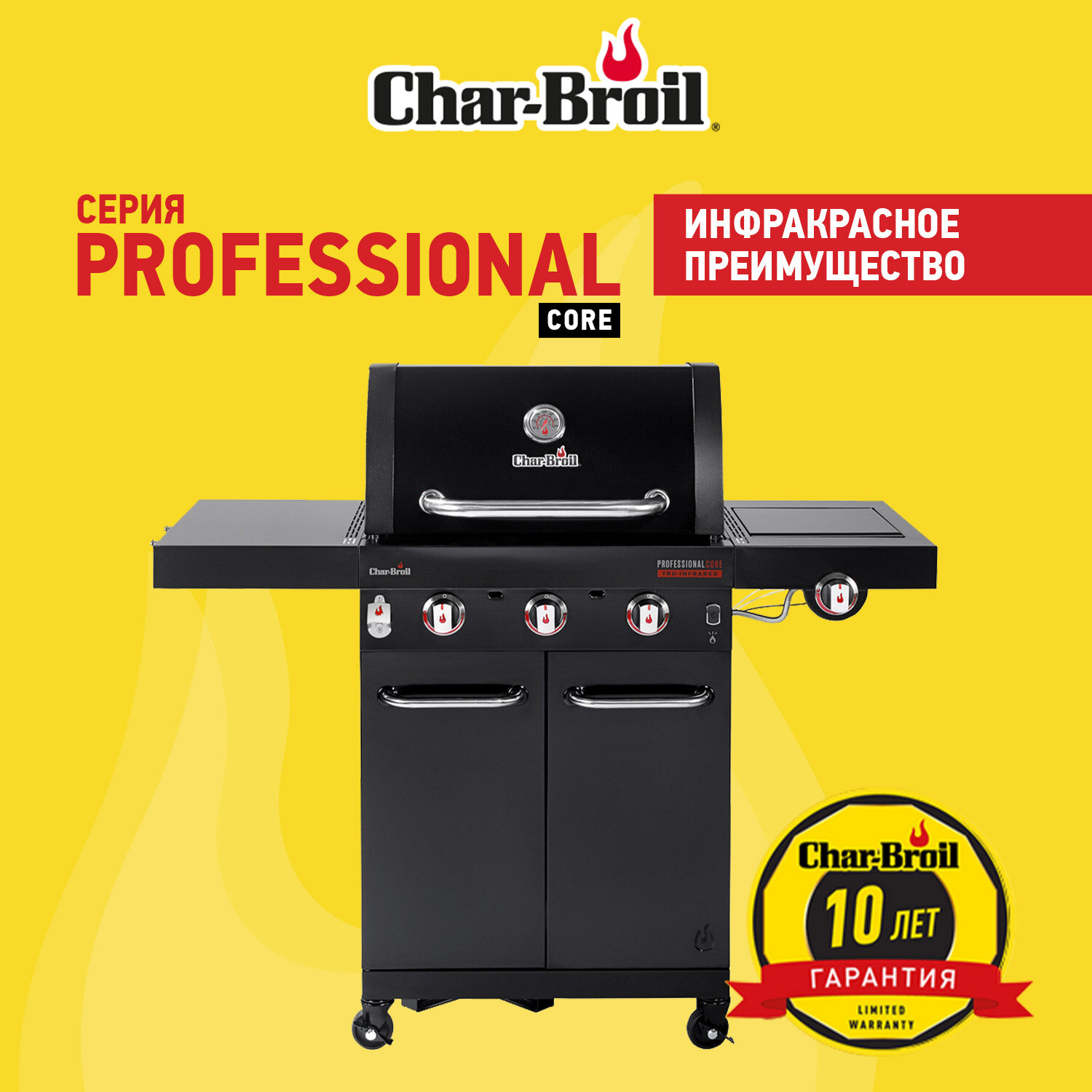 Газовый гриль Char-Broil Professional CORE 3B + В подарок (набор инструментов, перчатки, щетка, пресс)