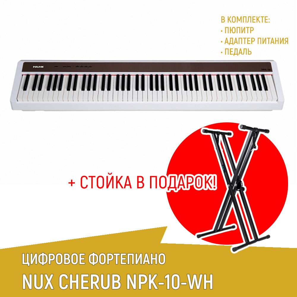 Цифровое пианино NUX NPK-10-WH, белое + cтойка Х-образная белая
