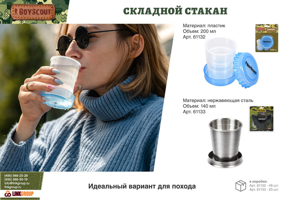 Складной пластиковый стакан BOYSCOUT 61132 интересное: