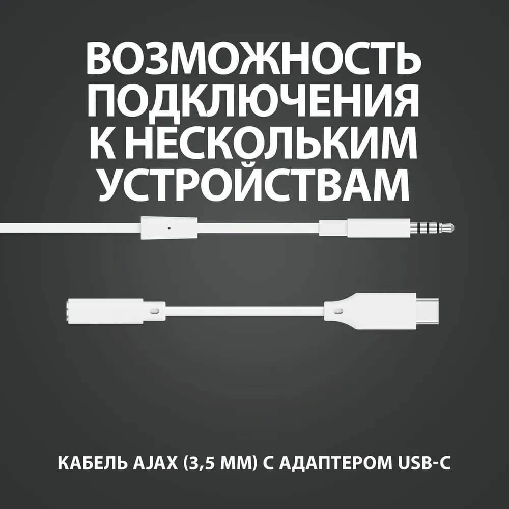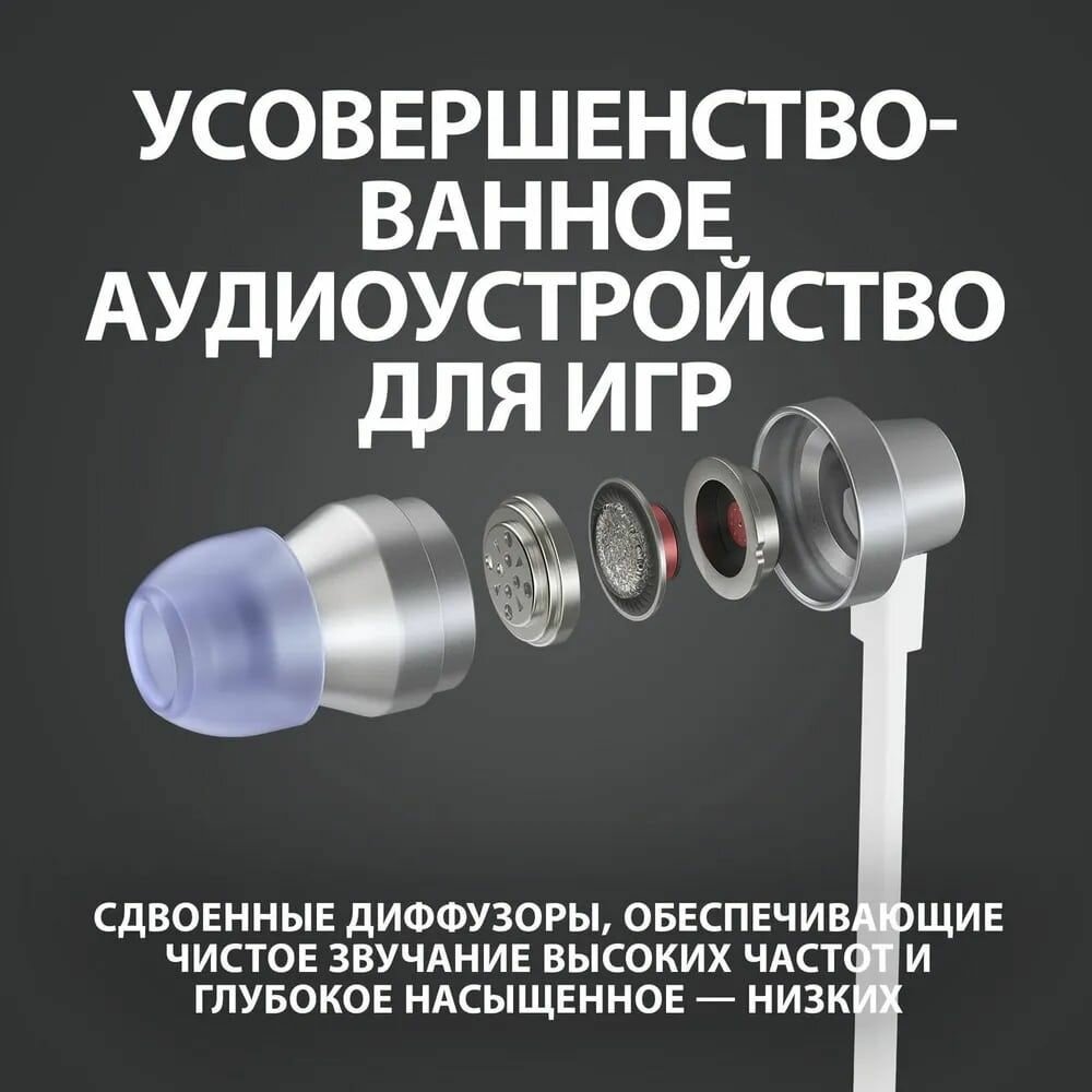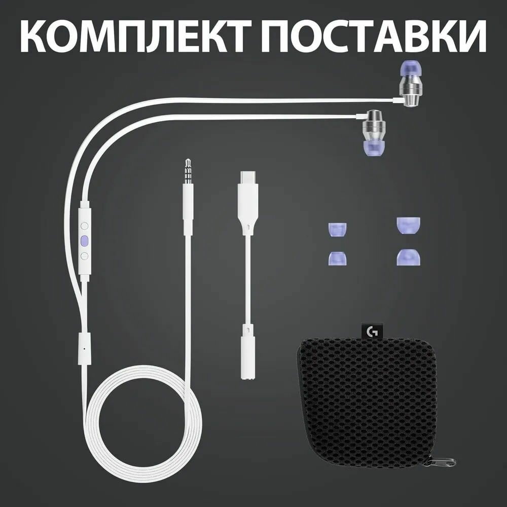 Наушники Logitech G333 white вкладыши, проводные, 20-20000 Гц, 24 Ом, 102 дБ, jack 3.5 мм/USB-C