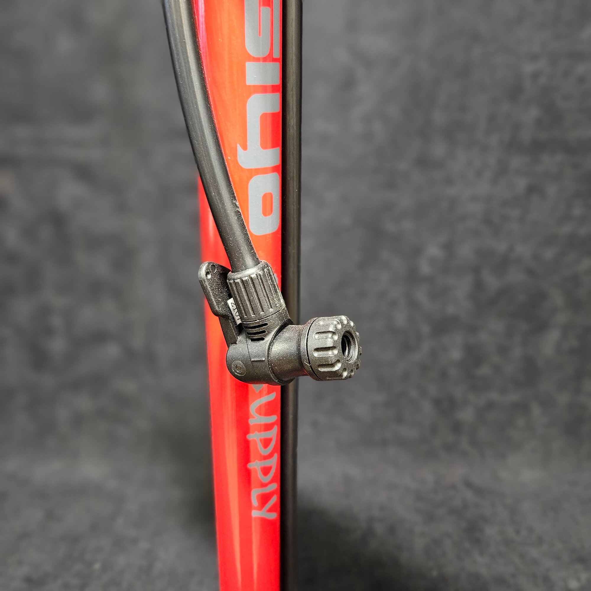 Насос для велосипеда GIYO GF38P напольный стальной, 11 атм/160psi, большой манометр, “авто/вело” ниппель, цвет: красный