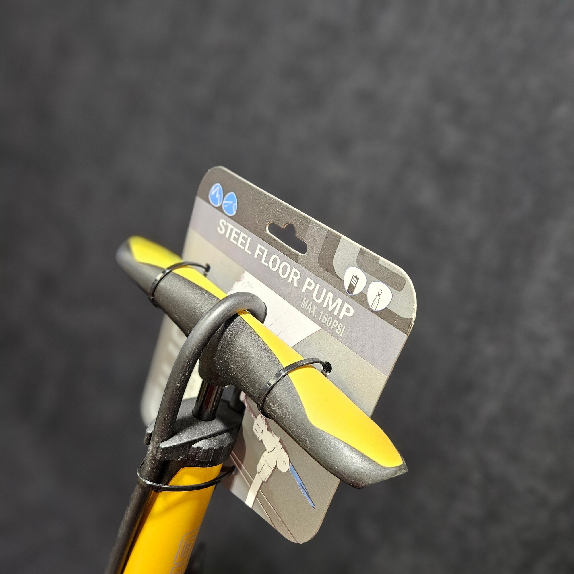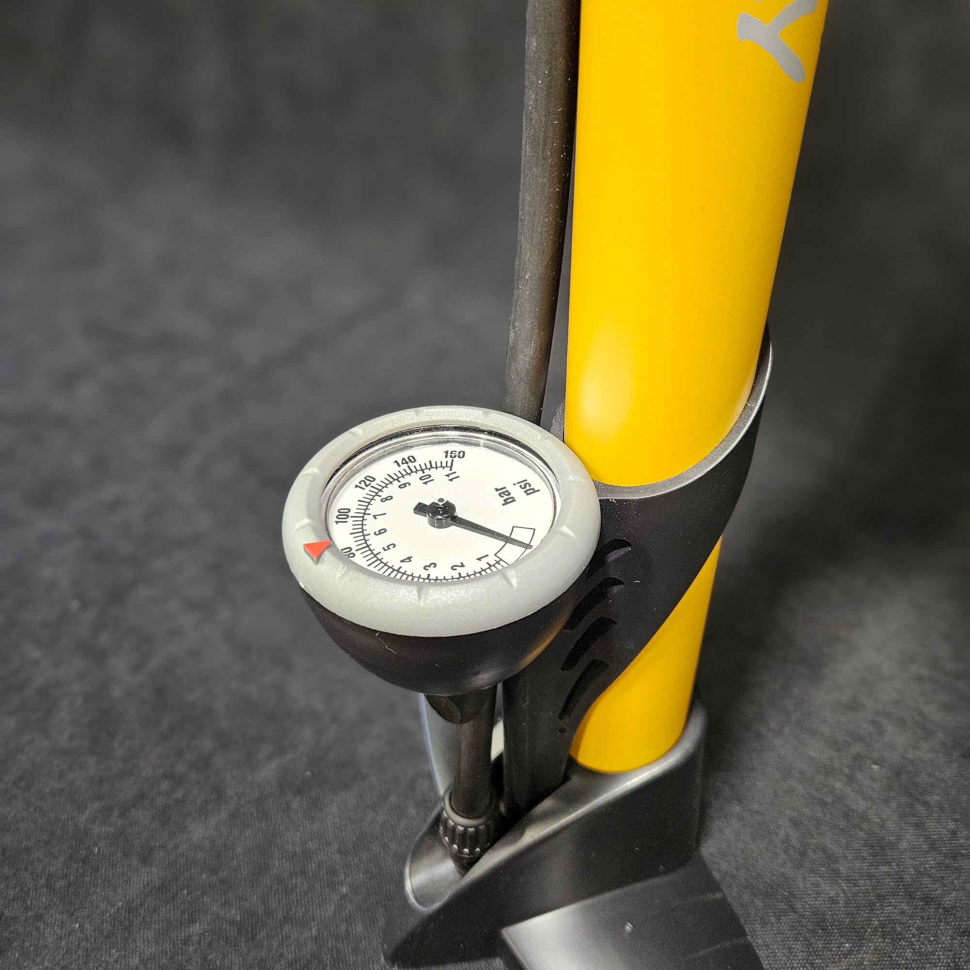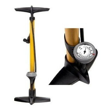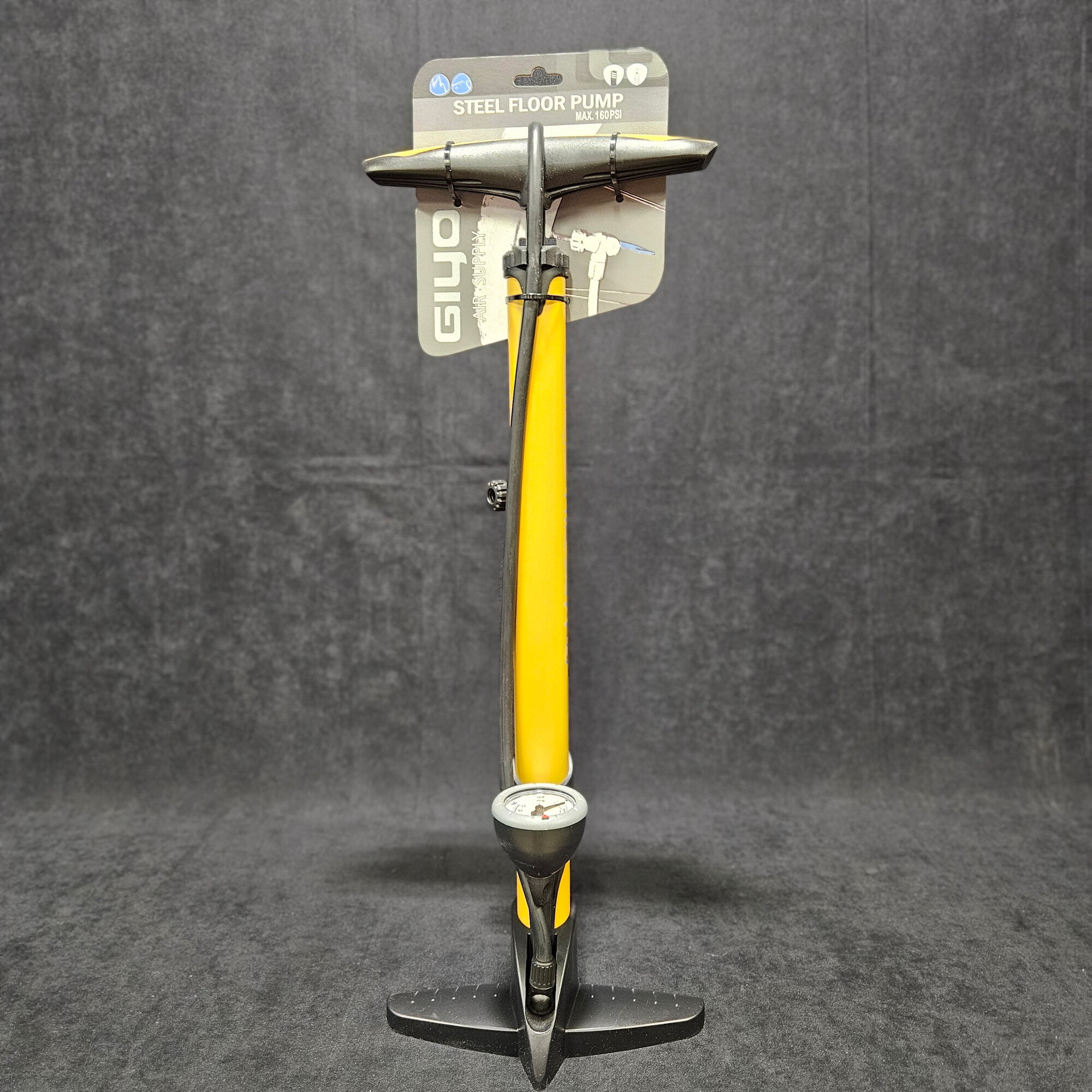 Насос для велосипеда Giyo GF-33P напольный стальной с манометром. Желтый.