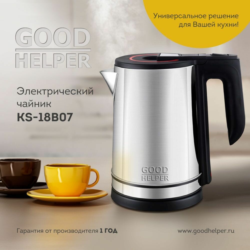 Чайник электрический GOODHELPER GH KS-18В07 1,8 л, 1800 Вт, черный/серебристый