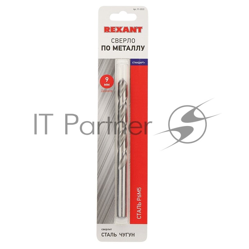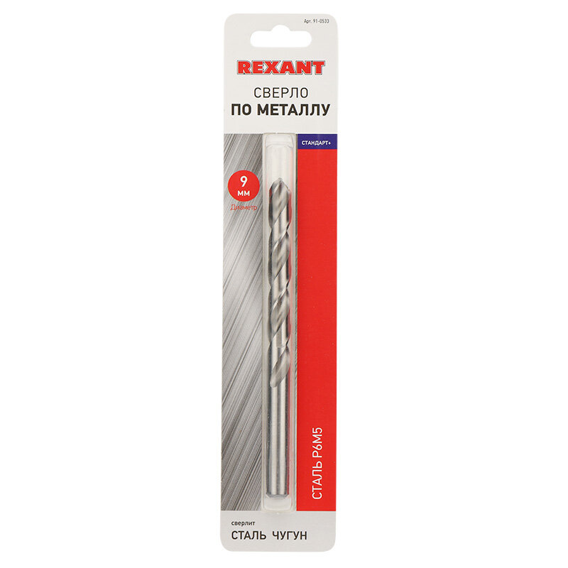 Сверло Rexant 91-0533 по металлу 9 мм «Стандарт+» (P6M5 M-2) (1 шт. в блистере) DIN 338