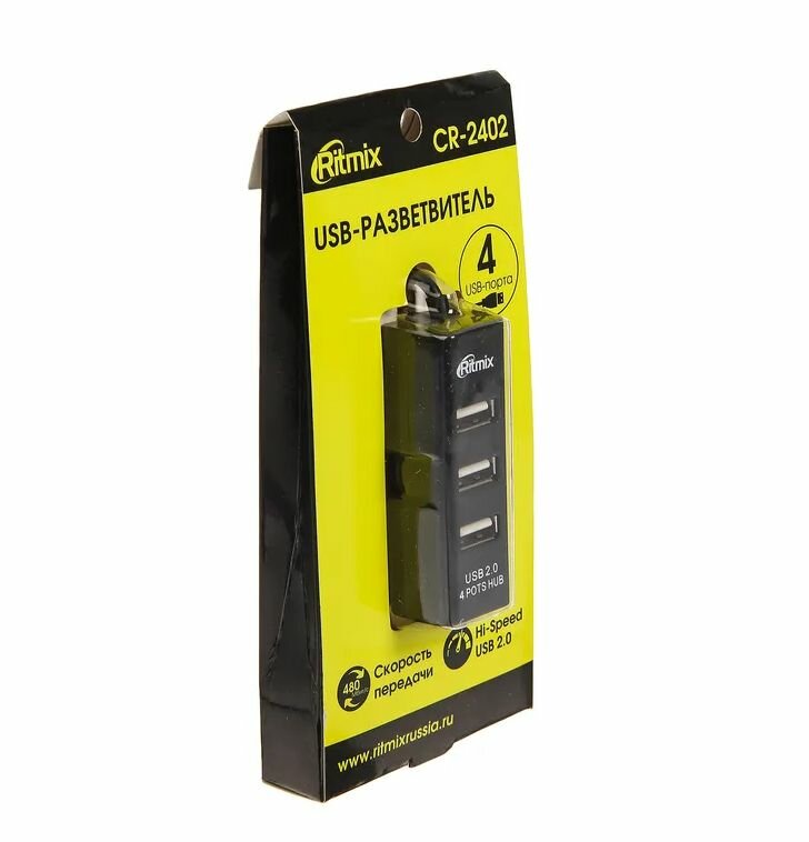 USB-устройства RITMIX Разветвитель USB (Hub) Ritmix CR-2402, 4 порта, USB 2.0, черный,