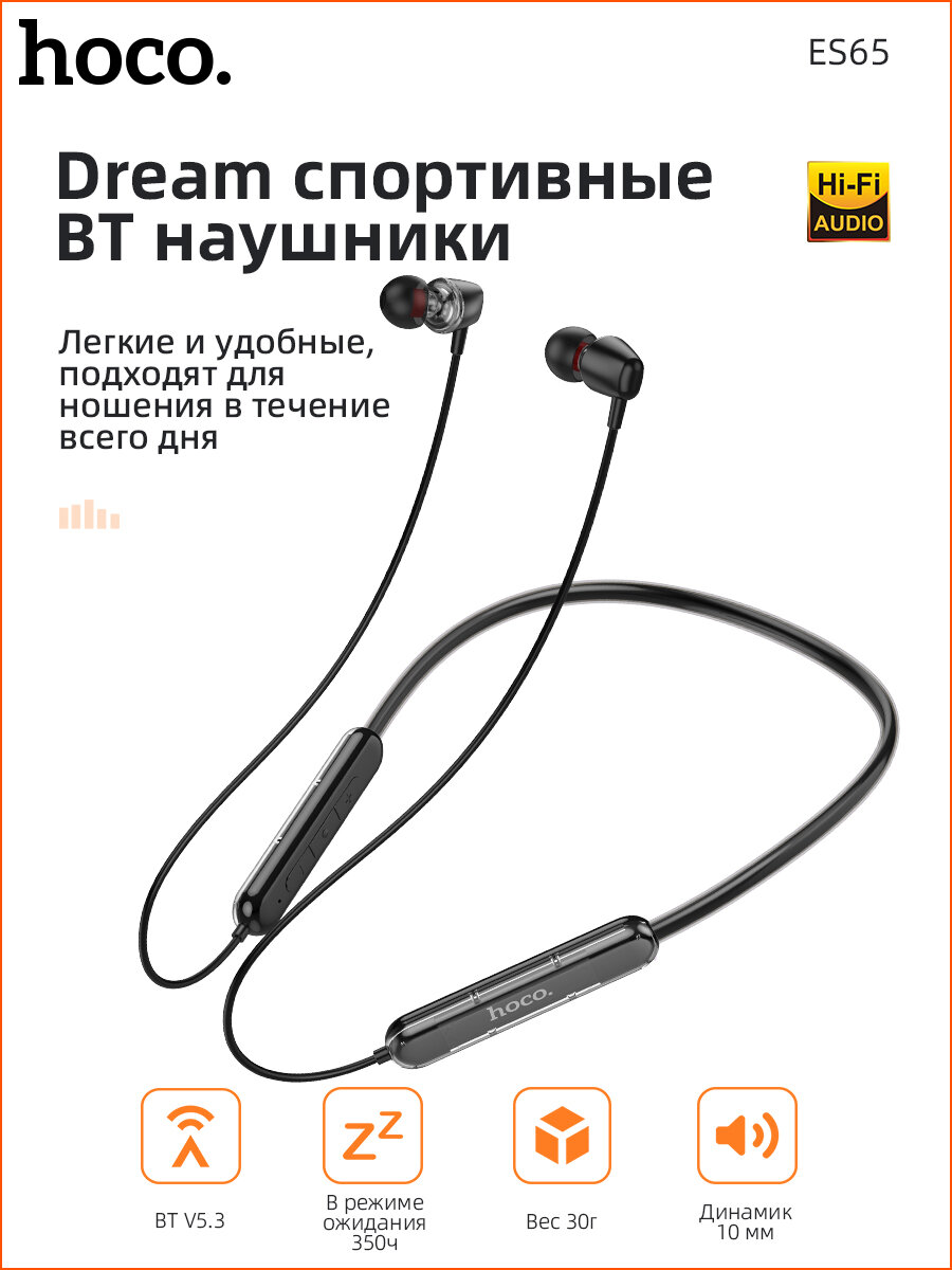 Беспроводные наушники для спорта HOCO ES65 Dream, Bluetooth, черный