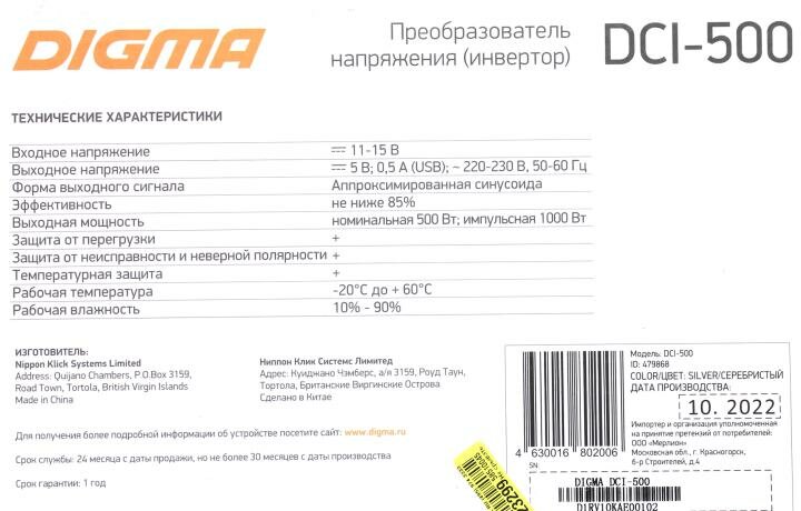 Преобразователь напряжения Digma DCI-500 (DCI-500)