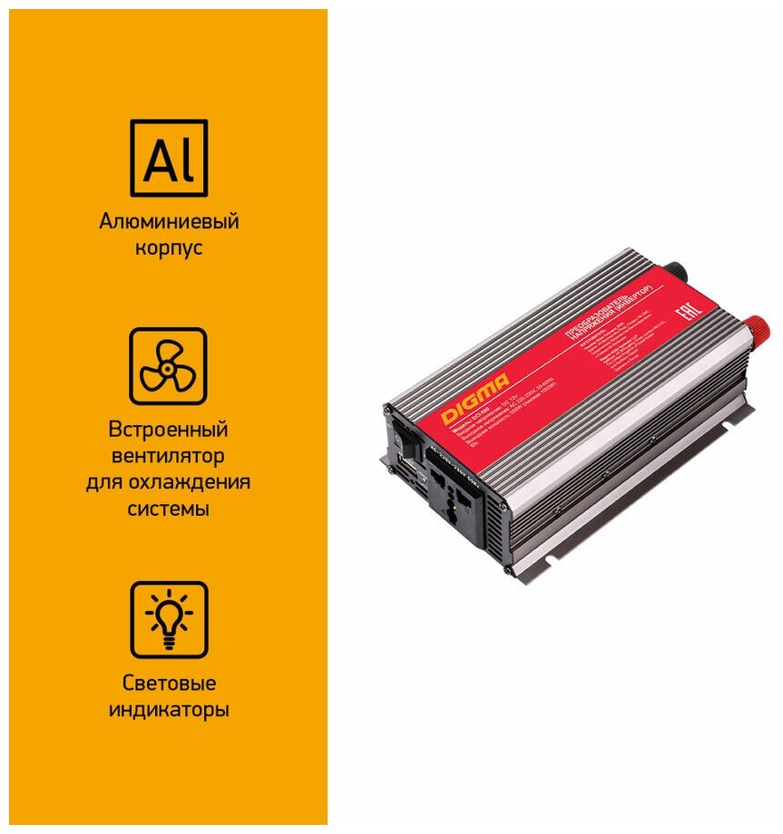 Автоинвертор Digma DCI-500, 500 Вт интересное: