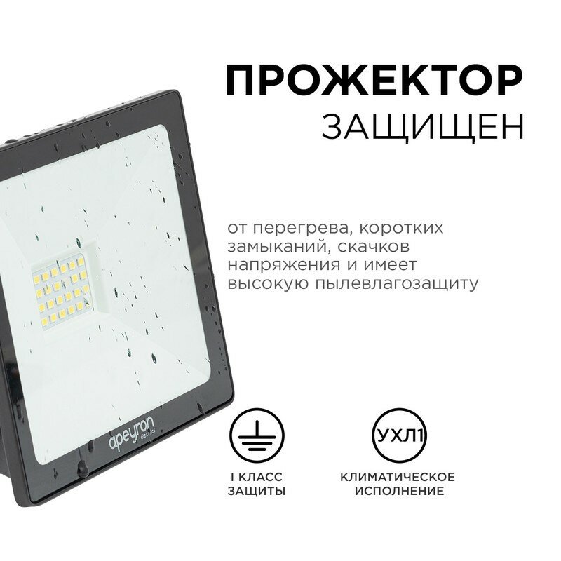 Apeyron Светодиодный прожектор LED 30Вт, 6500К, 2400 лм, IP65, smd, 141х121х25мм, черный 05-39