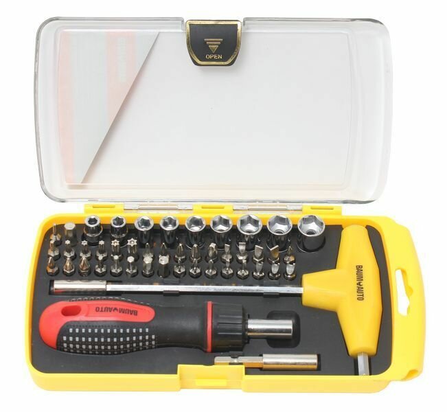 BAUMAUTO BM30314152 Отвертка Т-образная с набором бит и гоовок, 52 пр: гоовки 1/4 inch 9 , гоовки HEX, TORX, SL, PH, PZ, в пастиковом футяре