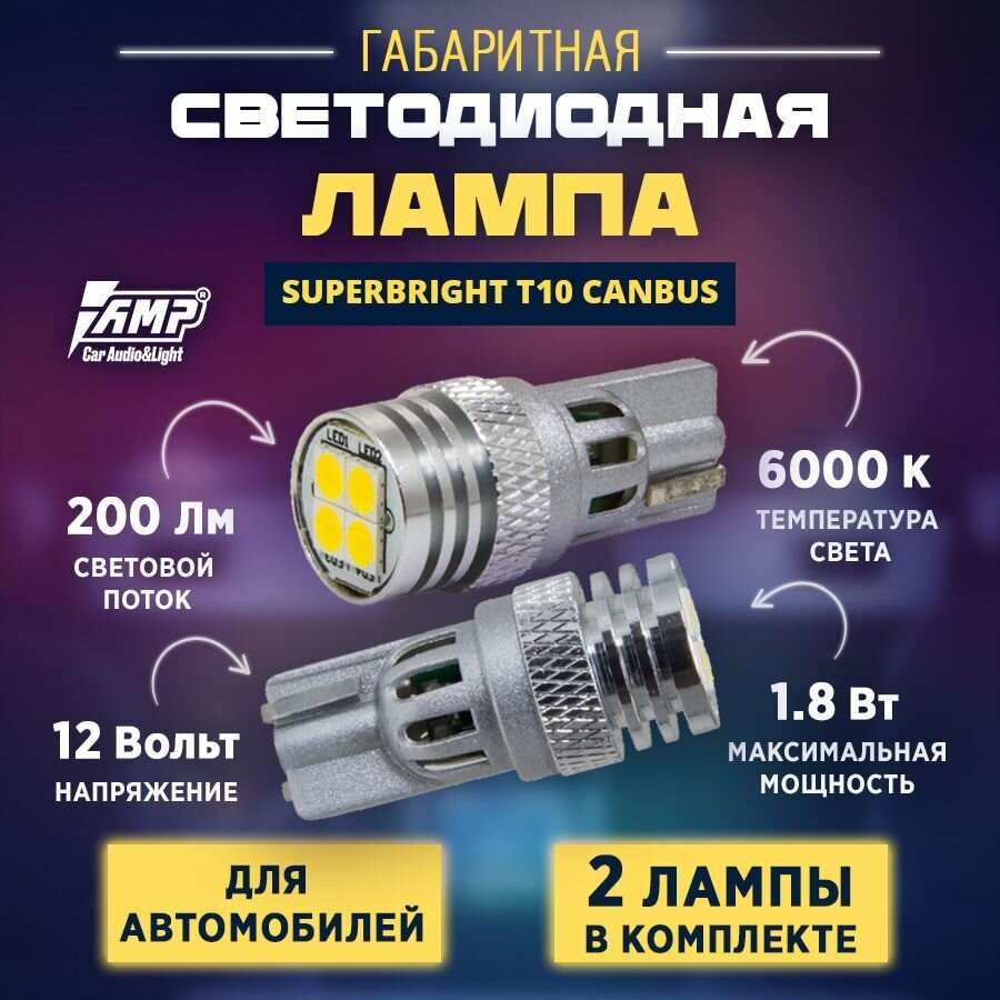 Светодиод габаритный AMP SuperBright T10 CANBUS (/ )