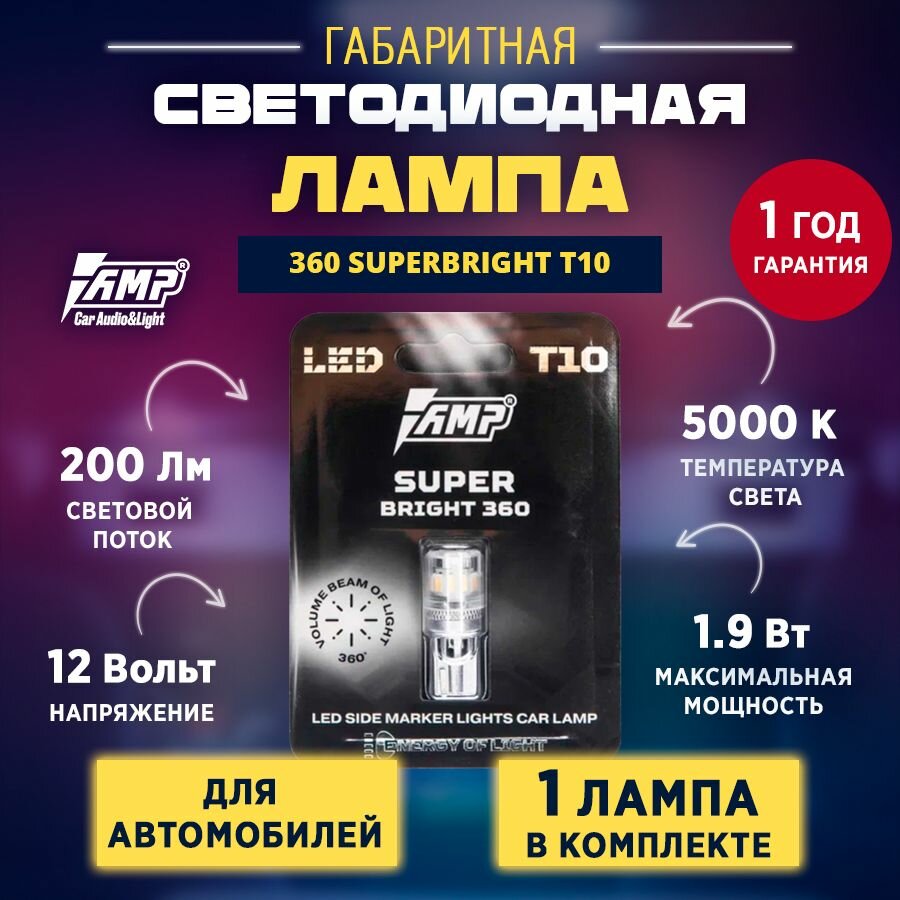 Светодиод габаритный AMP 360 StandartBright T10 (Комплект 2шт)