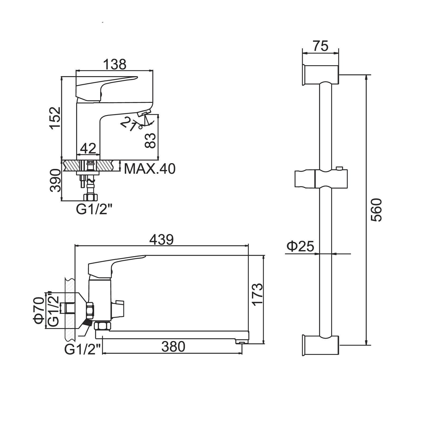 Набор смесителей 3 в 1 (для ванны, для раковины, душевая стойка) Accoona A2769, латунь интересное: